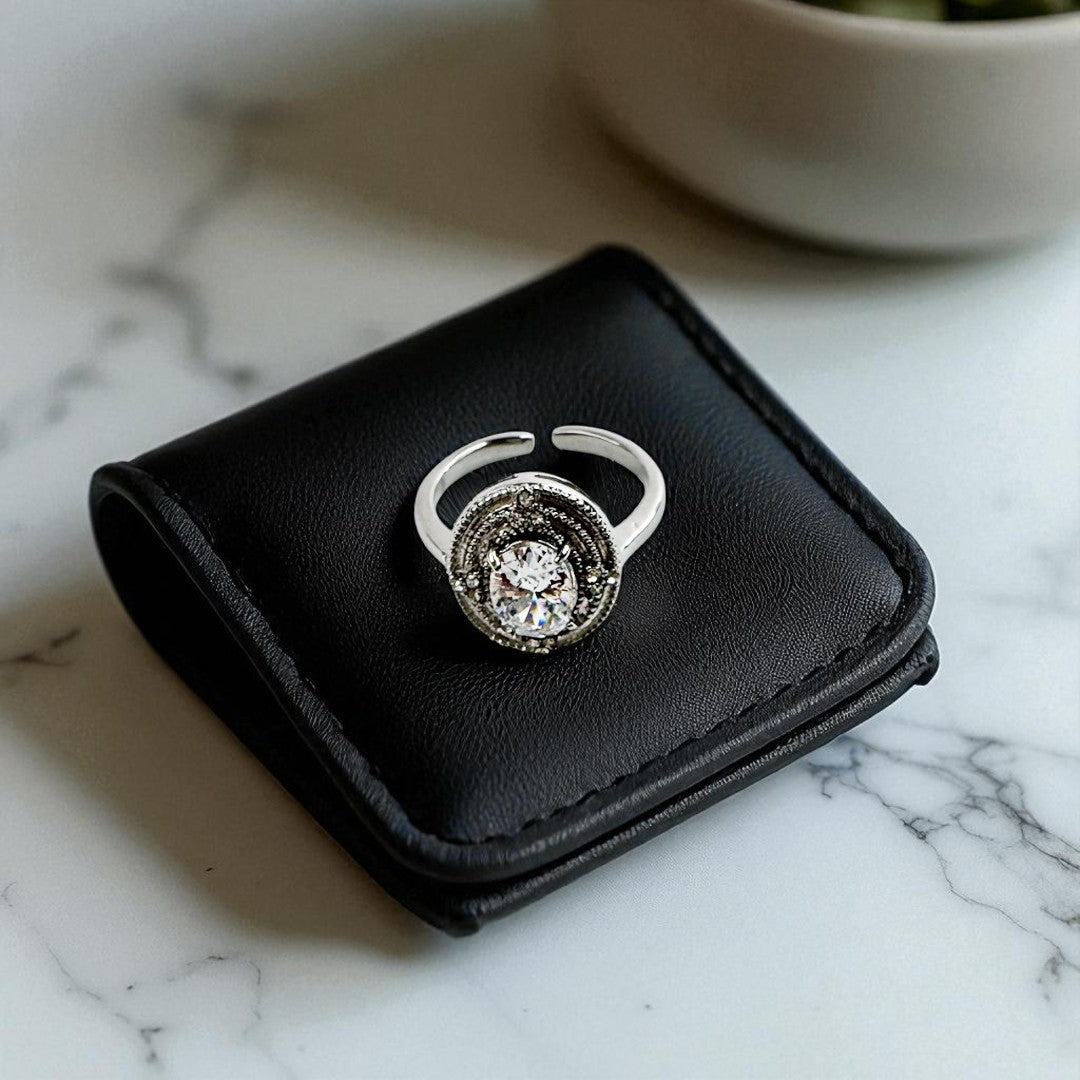 Um clássico que atravessa o tempo com elegância. O Anel Dorelle exibe uma pedra central de brilho intenso, rodeada por camadas cravejadas que criam uma composição circular e majestosa. O aro aberto e delicado permite um ajuste perfeito ao dedo, tornando-o ideal tanto para ocasiões especiais como para elevar o quotidiano com requinte.