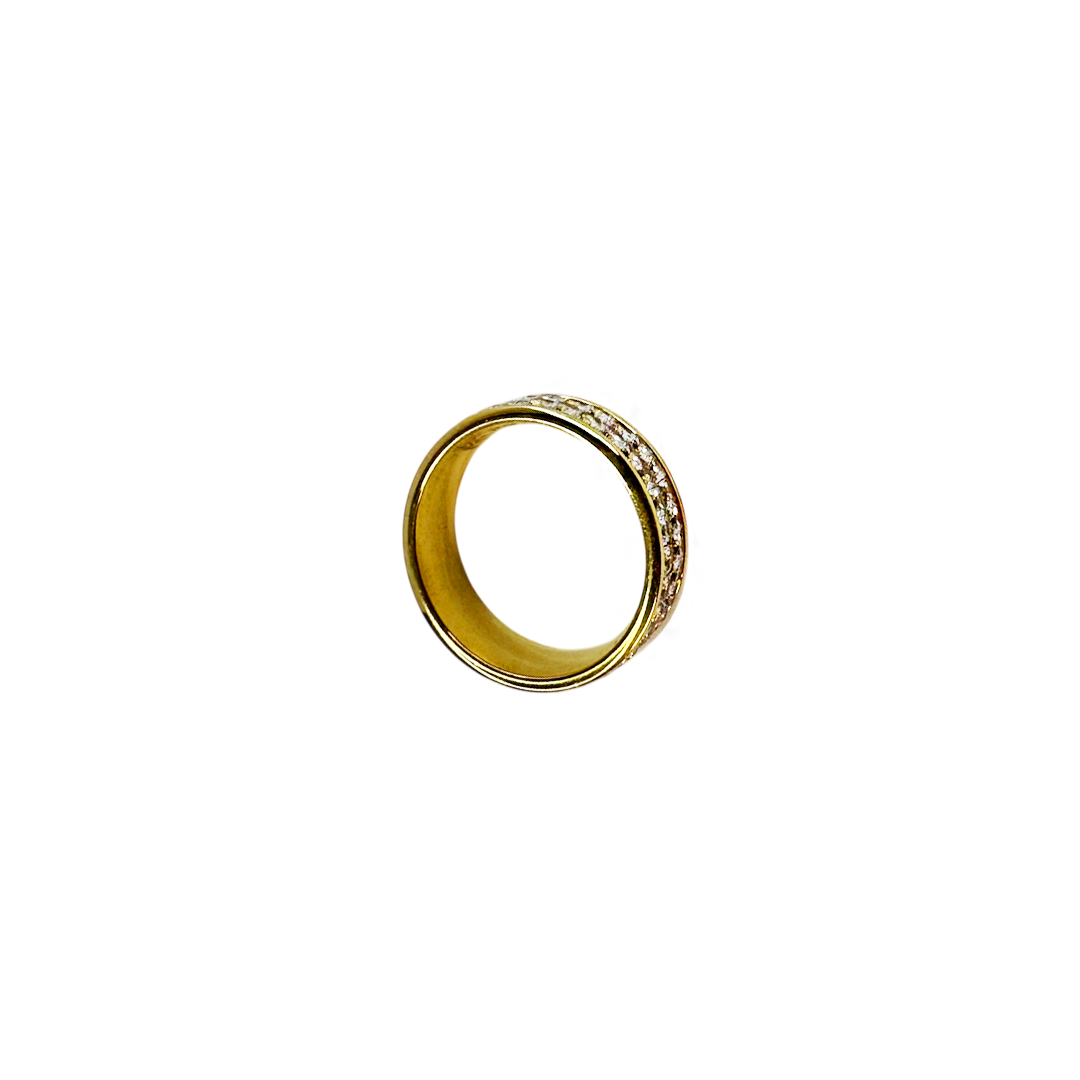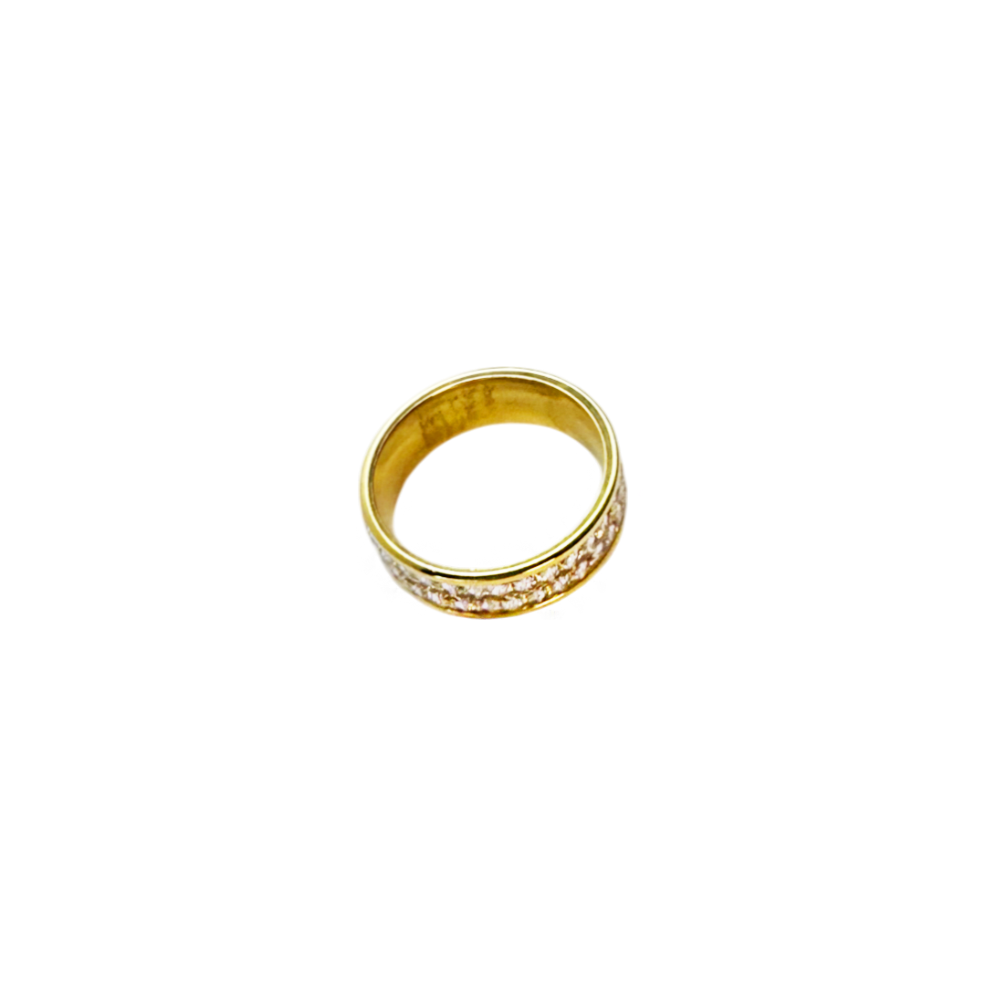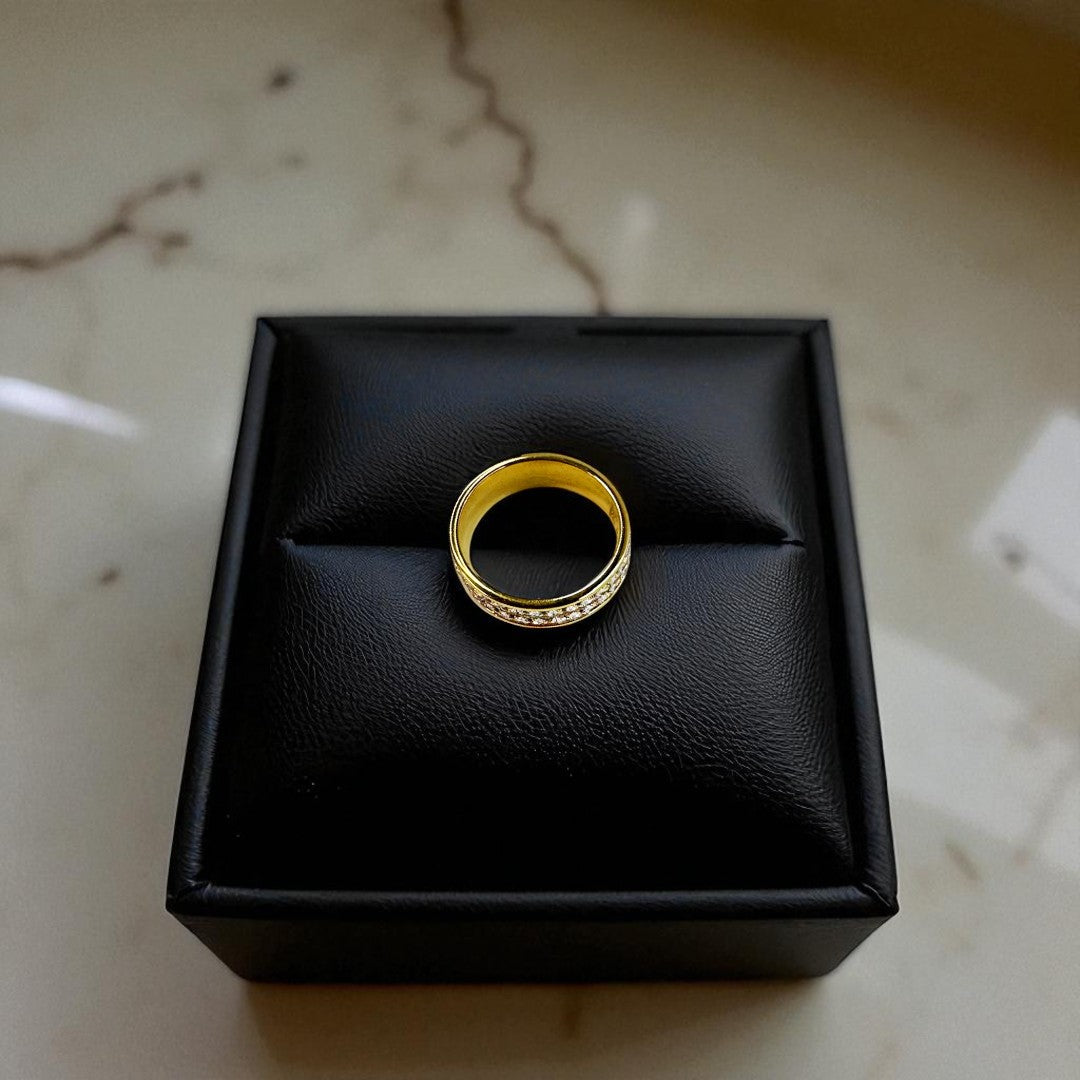 Clássico, refinado e eternamente elegante. Este anel traduz a essência da sofisticação com sua estrutura delicada em tom dourado e fileira de pedras que captam a luz com sutileza. Ideal para mulheres que valorizam o poder dos detalhes e o charme discreto, é uma peça que complementa desde looks diurnos com alfaiataria leve até produções noturnas mais sofisticadas. Um símbolo de estilo atemporal que nunca sai de cena.