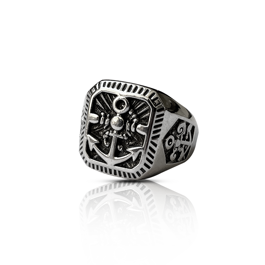 Inspirado na força e na serenidade do oceano, o Anel Marinus representa estabilidade e propósito firme. A âncora em relevo simboliza segurança e determinação, tornando esta joia um emblema de confiança e equilíbrio. Produzido em aço polido de alta resistência, combina elegância náutica com um design moderno e intemporal.