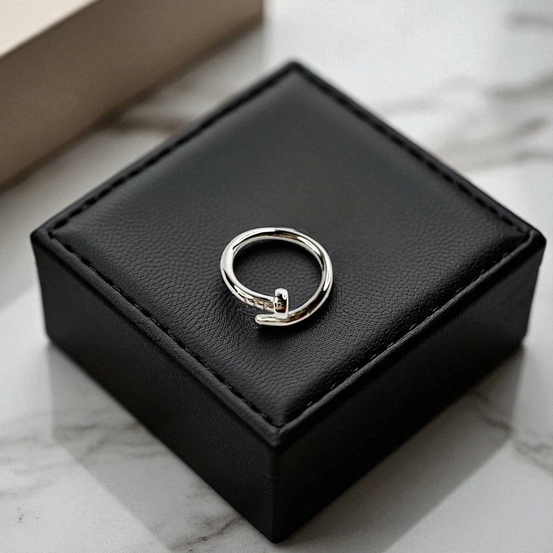 Inspirado na estética industrial com um toque de sofisticação, o Anel Nox Prateado apresenta um design ousado em forma de prego, enrolado com fluidez à volta do dedo.