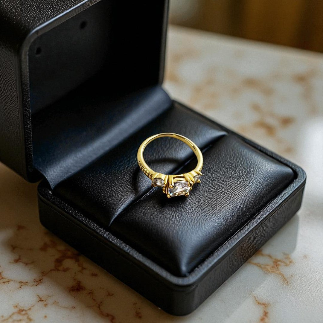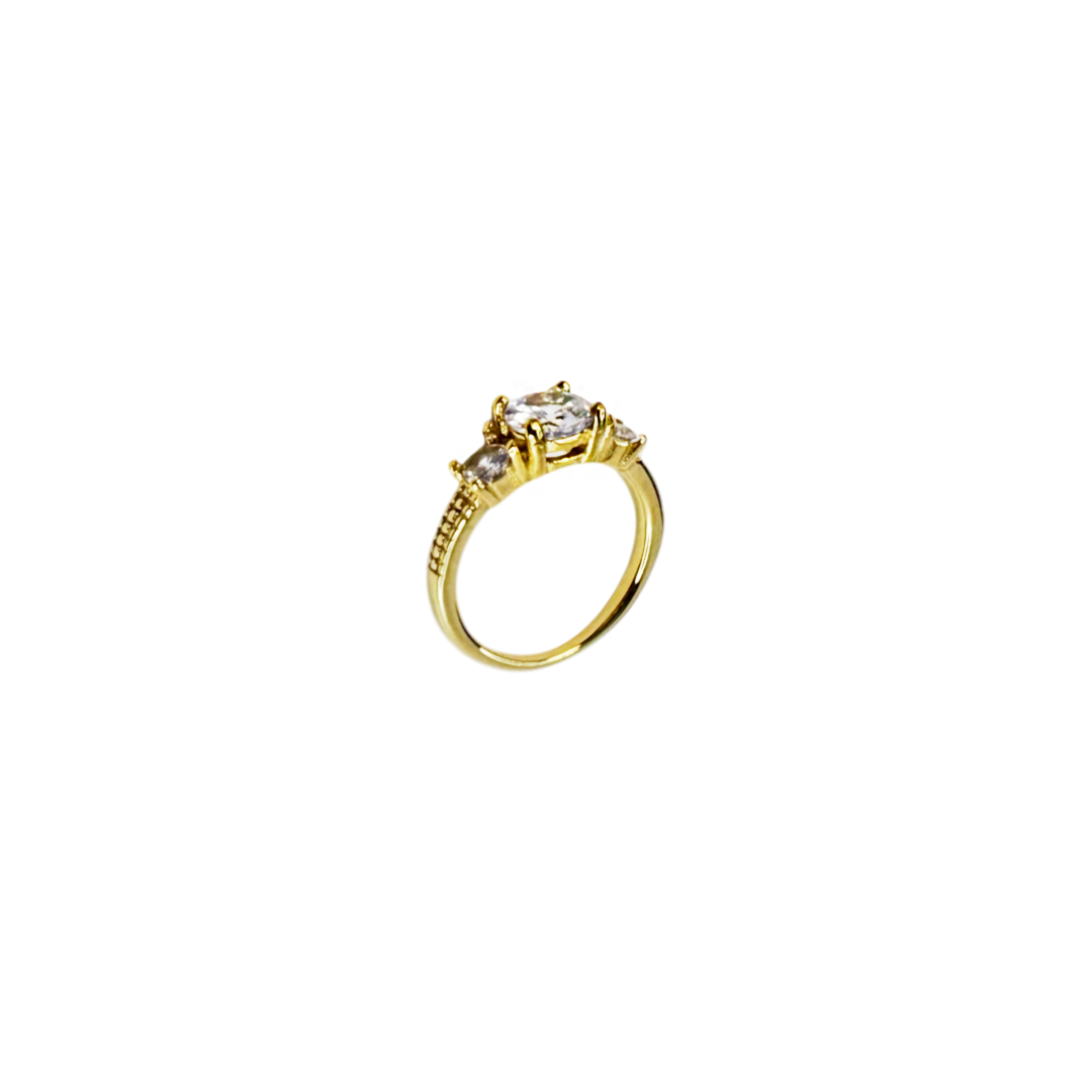 Com design refinado e brilho delicado, o Anel Vivienne Dourado é uma expressão de romantismo e sofisticação. A sua pedra central oval é realçada por duas pedras laterais que equilibram luz e harmonia, criando um visual clássico e envolvente. Uma peça perfeita para momentos especiais ou para eternizar o dia-a-dia com elegância.