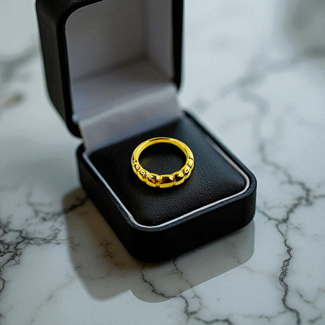 Elegância e força num só traço. O Anel Zephira apresenta um design marcante e contemporâneo, com detalhes em relevo que evocam movimento e sofisticação. A estrutura robusta combina com um acabamento polido que reflete luz com suavidade, ideal para quem aprecia joias com presença e autenticidade.