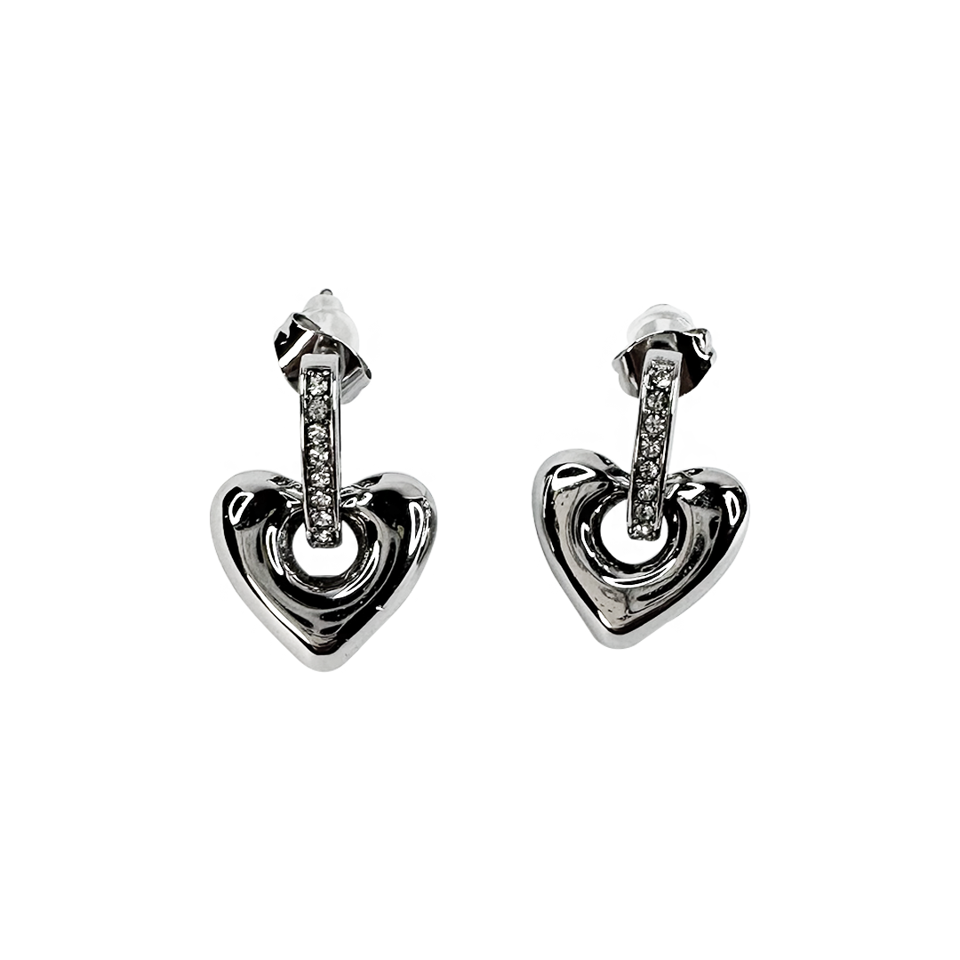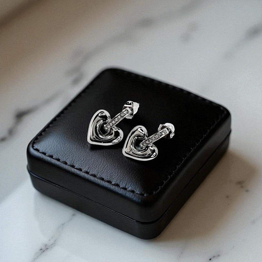 Um símbolo contemporâneo de paixão e estilo. O Brinco Cupid Prateado traduz o poder do amor com um design exclusivo em forma de coração atravessado por uma haste repleta de pequenas zircónias que refletem a luz com elegância. Uma peça ousada e sofisticada, feita para mulheres que sabem que o amor verdadeiro também é uma escolha de atitude e presença. Ideal para: Looks românticos, jantares especiais ou aquele toque de brilho num visual urbano moderno.