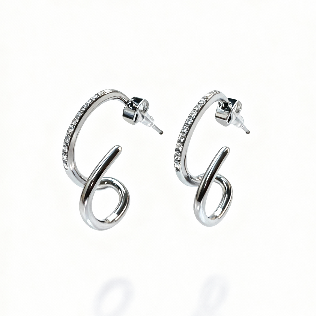 Os Brincos Eira são a sua peça de eleição para a elegância discreta e diária. Com o seu design de torção desconstruída em prateado, estas peças celebram a beleza simples e moderna, com um toque subtil de glamour dado pelos cravejados. A sua forma fluida e o brilho frio da prata combinam perfeitamente com a atmosfera serena do Outono.