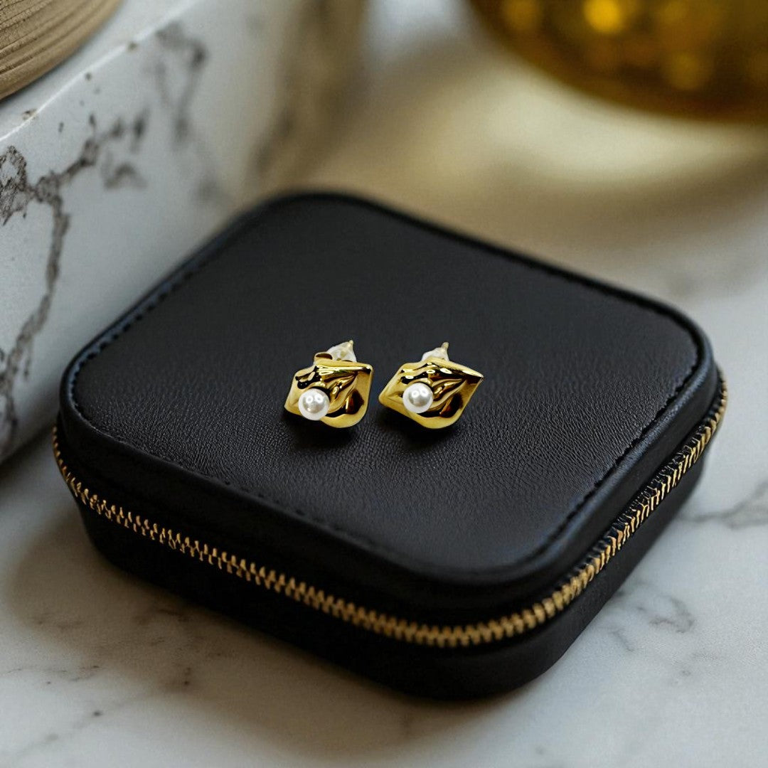 O Brinco Musa é uma peça de inspiração artística e presença elegante. As suas formas orgânicas em dourado polido criam um visual escultural e fluido, enquanto a pérola central traz equilíbrio, leveza e um toque clássico à composição.