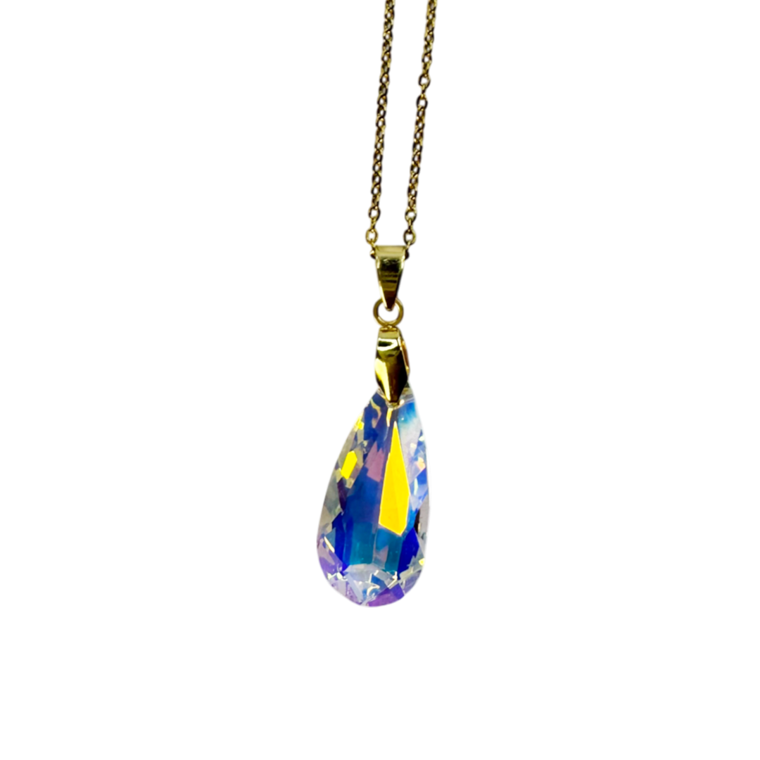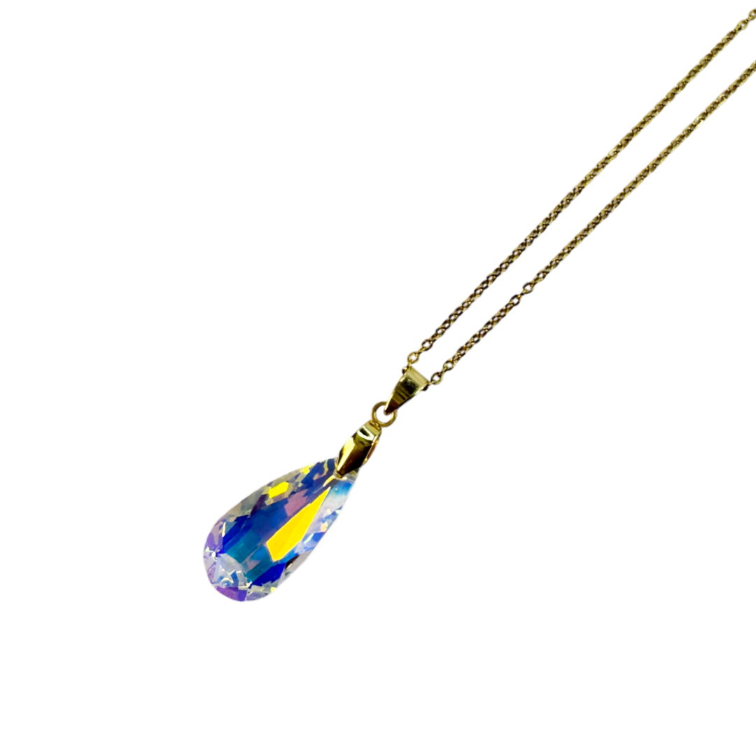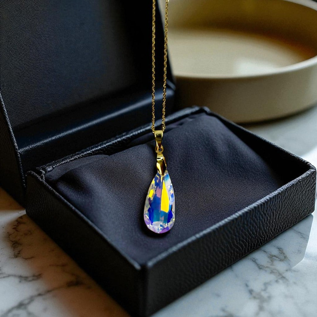 O Colar Celestine Dourado é uma peça que carrega leveza e sofisticação em cada detalhe. Seu pingente em cristal lapidado, com reflexos iridescentes, captura a luz de forma única, evocando a beleza etérea das estrelas e a elegância da mulher que o usa.