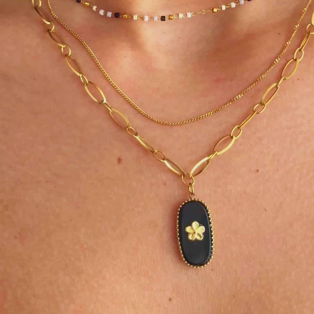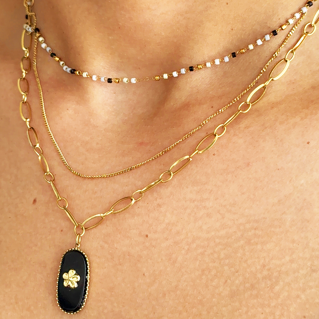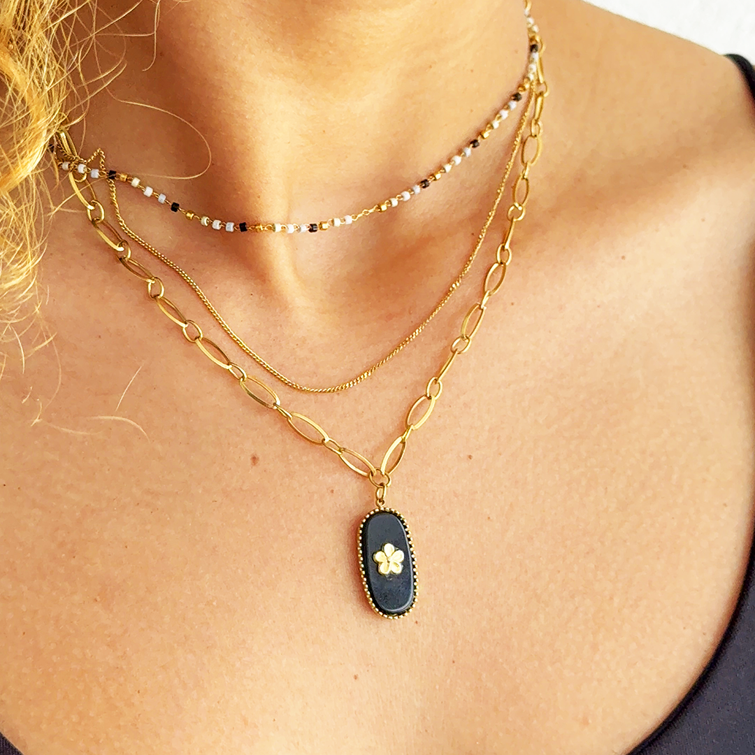 Trio de colares dourados com pingente, adornado com delicado trevo dourado. Uma peça sofisticada que une elegância e modernidade para realçar sua personalidade com charme discreto.