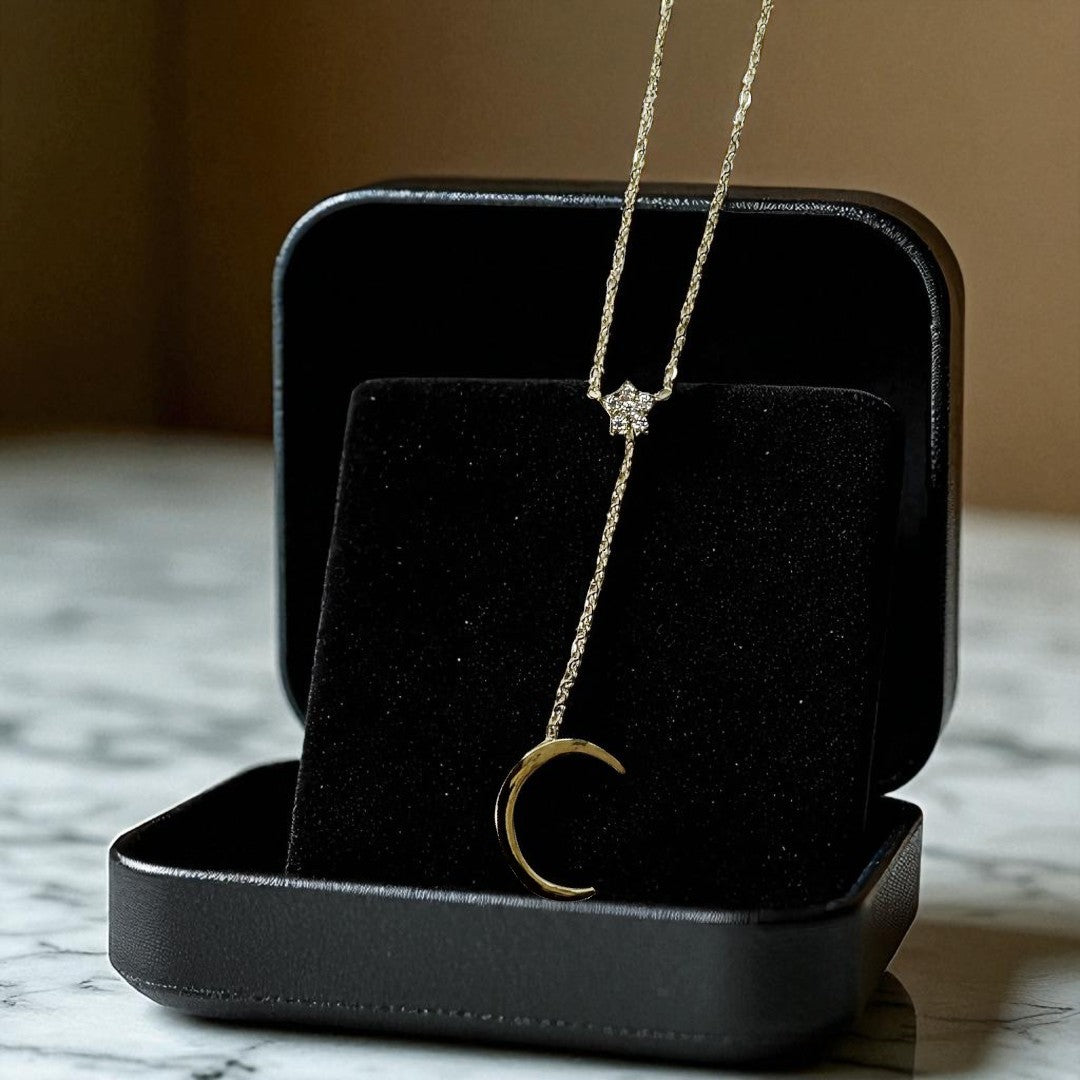 A delicadeza da lua encontra o brilho das estrelas nesta joia que carrega o encanto dos céus. O Colar Lunara combina o símbolo da lua crescente com um pequeno detalhe em forma de estrela cravejada, criando uma peça envolvente, simbólica e cheia de charme.