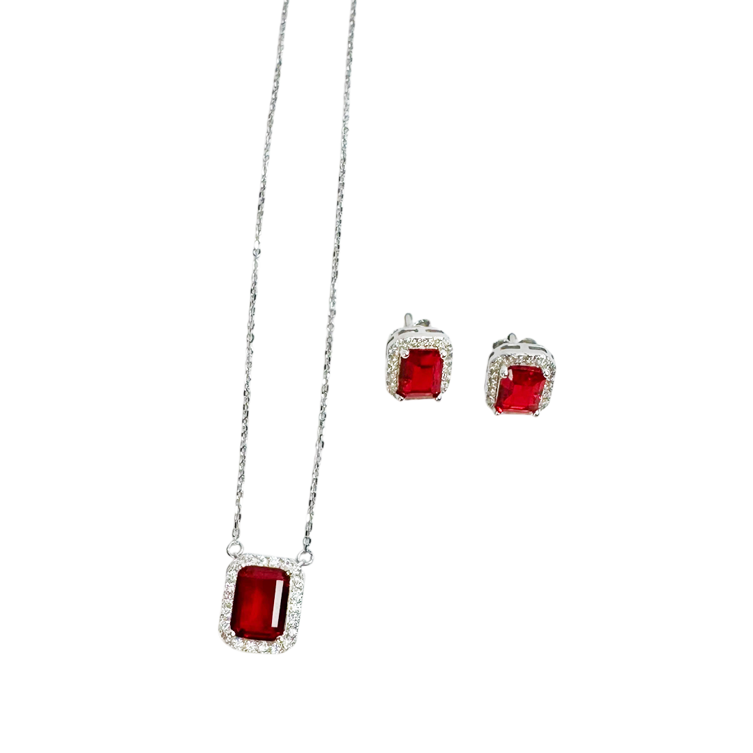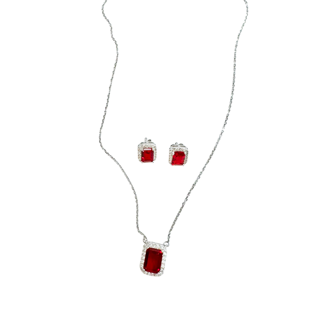 Um conjunto feito para impressionar — não apenas pela intensidade do vermelho profundo das pedras centrais, mas também pela nobreza do seu material. Produzido em prata 925, um metal precioso conhecido pela sua durabilidade e brilho superior, esta joia traduz elegância com autenticidade.