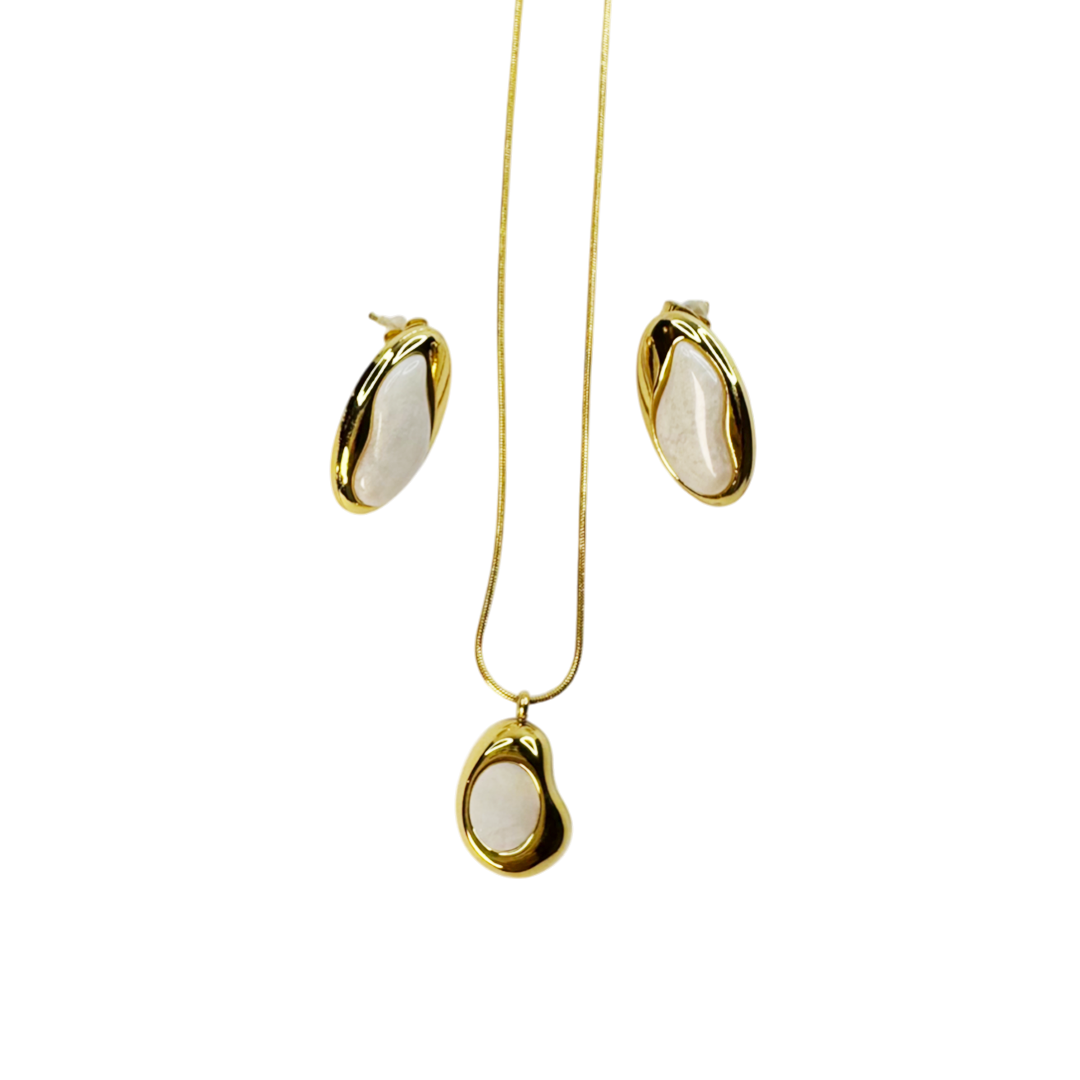 Inspirado na suavidade dos laços que conectam histórias, o Conjunto Sorelle reflete pureza e elegância atemporal. O branco perolado das pedras simboliza luz e harmonia, enquanto o acabamento dourado envolve cada detalhe com sofisticação. Uma escolha ideal para mulheres que expressam delicadeza com força e estilo.